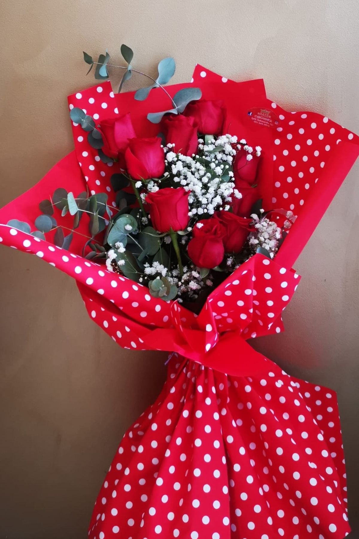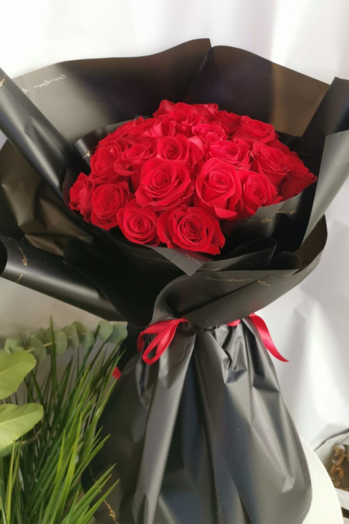 Elegantni buket crvenih ruža s gipsofilom i eukaliptusom, upakiran u sofisticirano crno pakiranje. Donna je snažna, ženstvena i bezvremenska – savršen izbor za posebnu poruku.