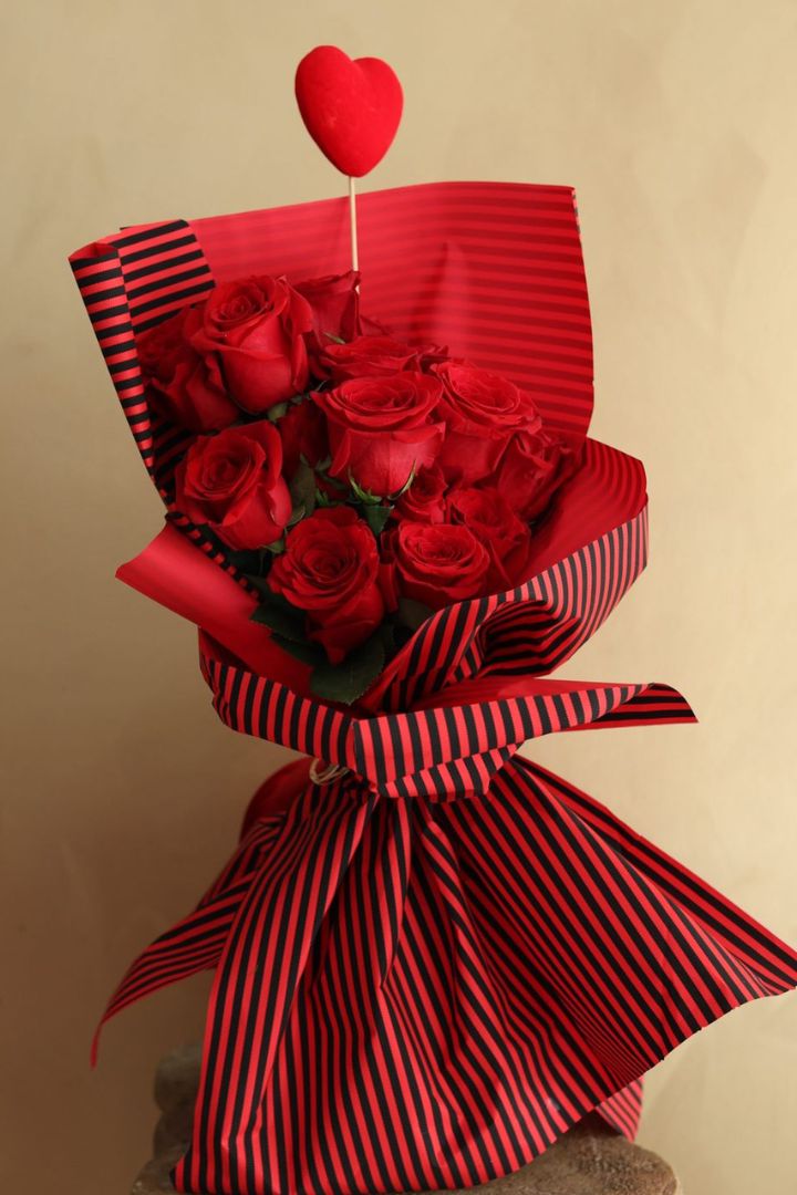Uvijek poseban – buket crvenih ruža simbolizira ljubav, strast i romantiku. Upakiran u elegantni crveno-crni papir s dodatkom srca, ovaj buket savršen je način da izrazite svoje osjećaje.