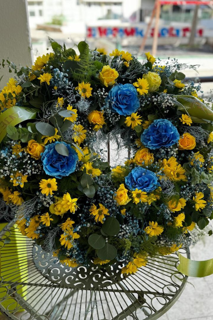Unikatna dekoracija od trajnog cvijeća u žutim tonovima.